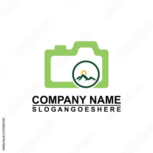 Fototapeta premium Logo photo camera and mountain, digital version nature creative symbol...