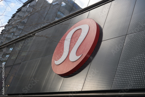© eugen, Fototapeta premium logo sign outside lululemon, a sportswear store, located at 2 Bloor St W, Toronto