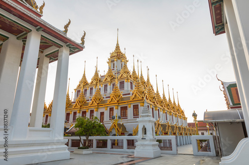 Fototapeta premium Loha Prasat, The metallic castle covered with gold leaf of Wat Ratchanadda...