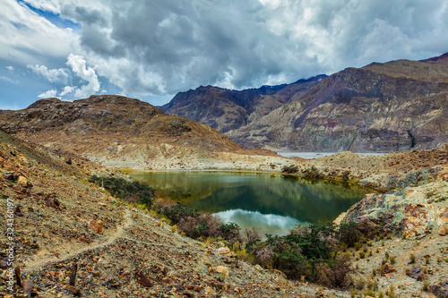 Naklejka premium Lohan Tso mountain lake. Nubra valley, Ladakh, India
