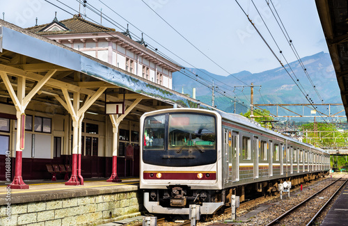 © Leonid Andronov, Fototapeta premium Lokalny pociąg na stacji kolejowej Nikko - Japonia