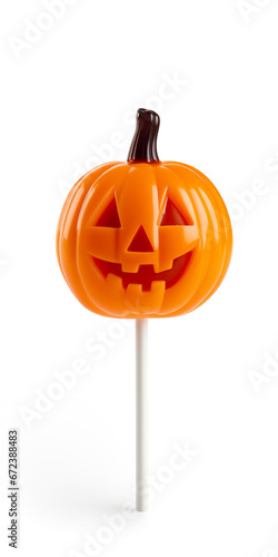 Fototapeta premium Lollipop candy with the shape of a Halloween Pumpkin