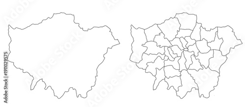 © Akhtar Ansari , Fototapeta premium London administrative map, Greater London outline and borough state map set - illustration version