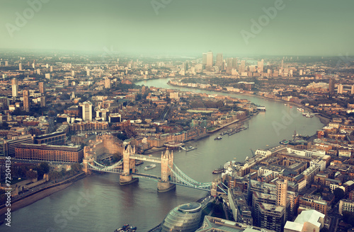 Fototapeta premium London aerial view with Tower Bridge in sunset time