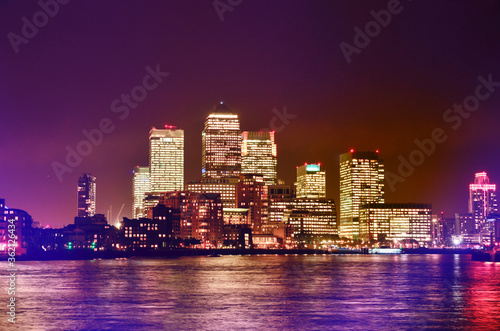© peter, Fototapeta premium London at night and river Thames. High buildings with luminous windows.