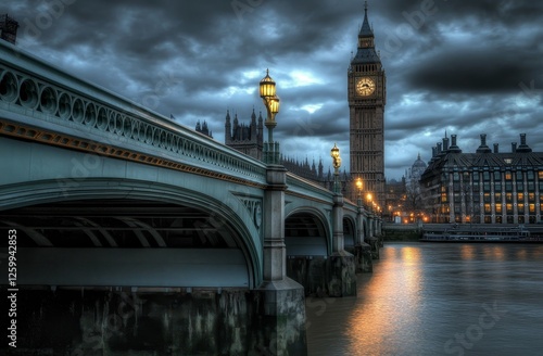 Naklejka premium London Bridge, twilight, Big Ben, Houses of Parliament