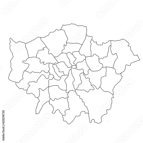 Fototapeta premium London ceremonial counties blank map. High detailed illustration map with counties, regions, states - London map . outline map of London province.