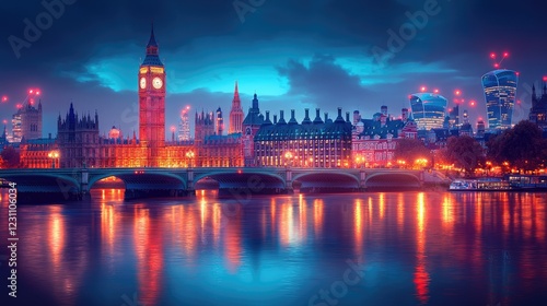 © M_H_L, Obraz premium London Cityscape Night View Big Ben Illuminated