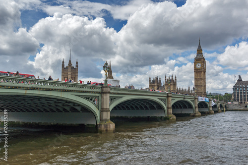 Naklejka premium LONDON, ENGLAND - JUNE 15 2016: Clouds over Westminster Bridge and Big Ben,...