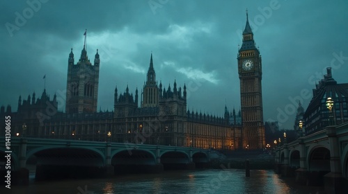 Naklejka premium London's Majestic Parliament at Dusk: A Serene Twilight View