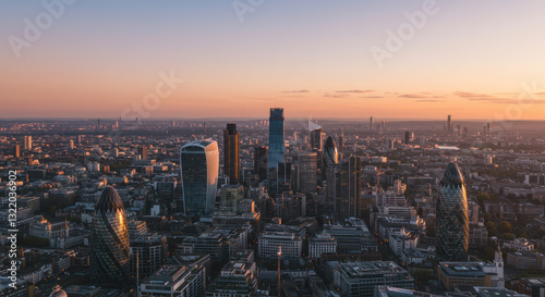 Fototapeta premium ** London Skyline at Sunset: Stunning Aerial View of City Skyscrapers &...