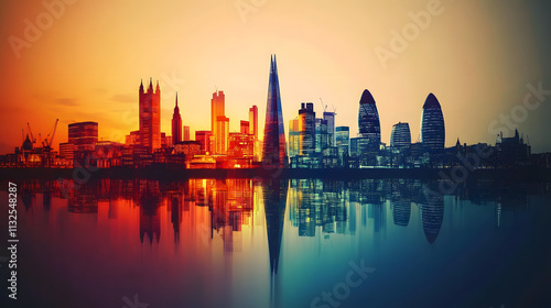 © Daniel, Fototapeta premium London Skyline Silhouette with Reflection.