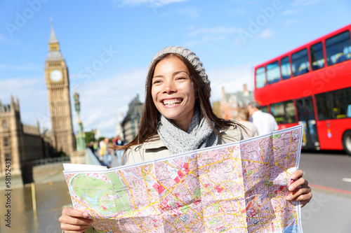 © Maridav, Fototapeta premium London tourist woman sightseeing holding map