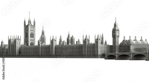 © GoonDuLagoon, Fototapeta premium London UK city skyline grayscale ambient occlusion on black background