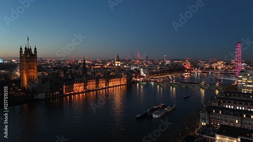 Obraz premium London UK Houses of parliament at dusk drone,aerial .
