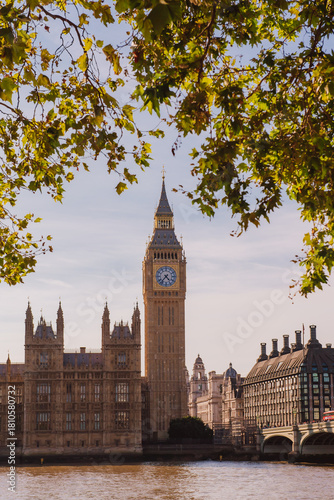 © Somkiat, Fototapeta premium London, UK, 14 SEP 2023: Big Ben clock tower captured from within St. Thomas hospital Trust Park.