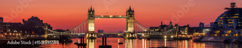 Naklejka premium LONDON - Wide panorama view of Tower Bridge and City Hall on the River Thames in the orange light of dawn