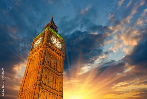 © jovannig, Fototapeta premium Londyn, wspaniały widok na wieżę Big Ben i zegar w słońcu