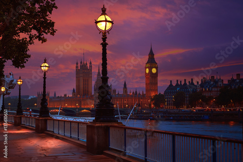 © lunamarina, Obraz premium Londyn zachód słońca skyline Bigben i Thames