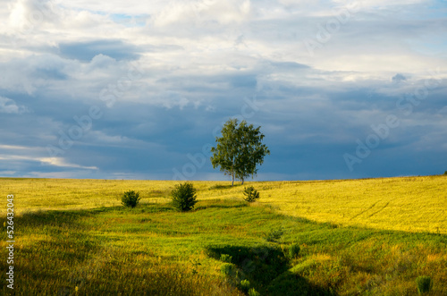 © valeriy boyarskiy, Obraz premium Lone birch tree in wheat field