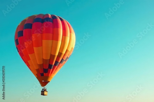 Naklejka premium Lone, brightly colored hot air balloon against clear sky, sky, bold