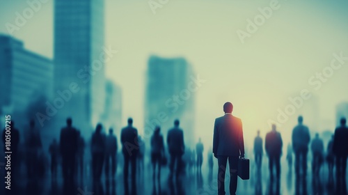 © vlntn, Fototapeta premium Lone Businessman Amid Blurred Urban Crowd