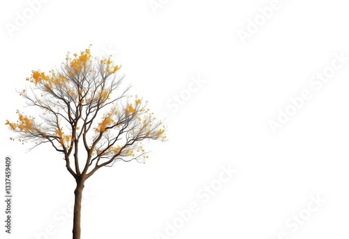 © Kathy, Fototapeta premium Lone deciduous tree, branches reaching skyward, stark white backdrop, element, background
