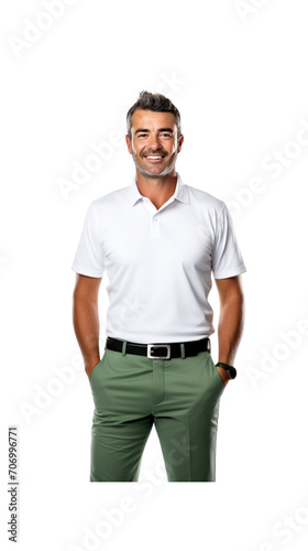 © somchai20162516, Fototapeta premium Lone golfer standing happily smiling on PNG transparent background.