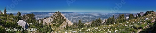 © Jeremy, Naklejka premium Lone Peak and surrounding landscape view, Jacob’s Ladder hiking trail, Lone Peak Wilderness, Wasatch Rocky Mountains, Utah, USA. 2023