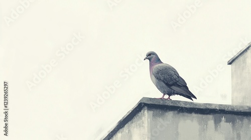 © SlashStd, Obraz premium Lone pigeon perched on rooftop, overcast sky