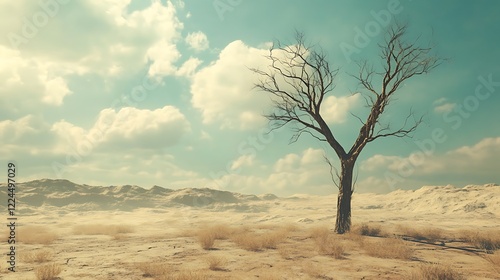 Obraz premium Lone Tree in a Desolate Desert Landscape