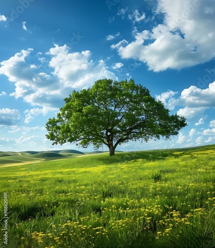 © Adobe Contributor, Fototapeta premium Lone Tree in a Field of Green