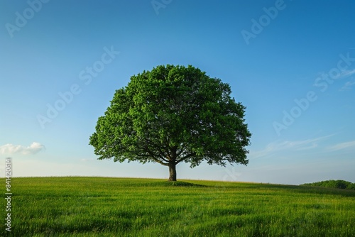 Fototapeta premium lone tree in the morning on the verdant peak of a mountain