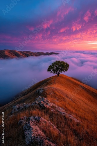 © Beruang, Naklejka premium Lone Tree on Hill at Sunrise