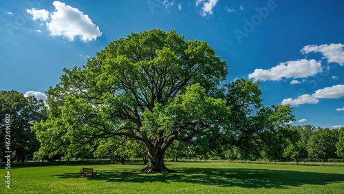 © Emin, Fototapeta premium Lone tree standing tall under vibrant blue skies in a garden