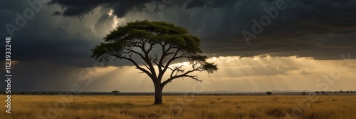 Obraz premium Lone Tree Stands Against Dramatic Stormy Sky