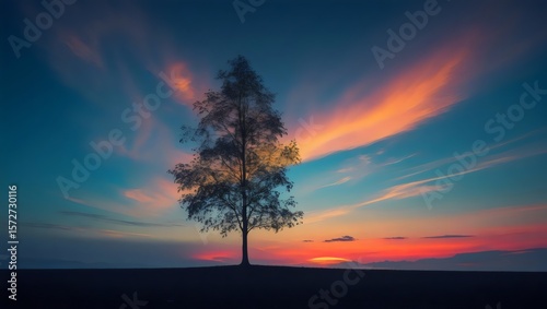 © The Shot Hub, Fototapeta premium Lone Tree Sunset: Vibrant Sky Over a Tranquil Landscape