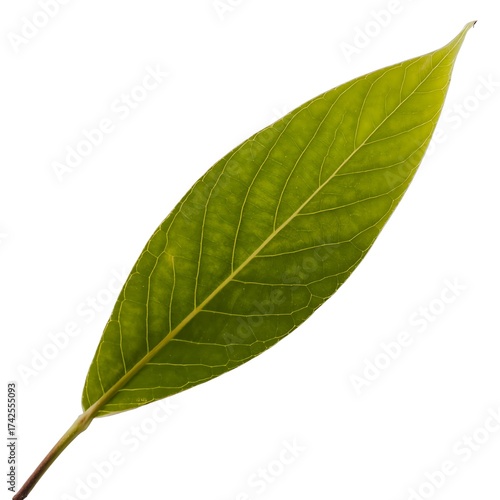 © MSTKolpana, Obraz premium Lone vibrant green willow leaf showing delicate veins detailed texture isolated