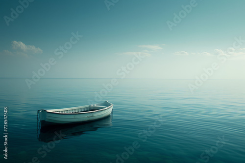 Naklejka premium Lone White Boat on Vast Calm Sea