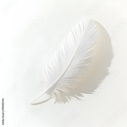 Obraz premium Lone White Feather Gracefully Settled on a Bright,Untarnished Plane