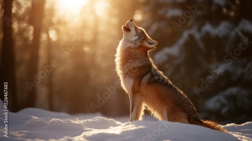 © Sirichat. Camphol, Obraz premium Lone wolf howling in snow-covered forest
