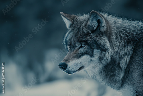 © YouAreBeautiful, Fototapeta premium Lone Wolf Symbolizing Anger in Cold Wilderness - Tense Posture