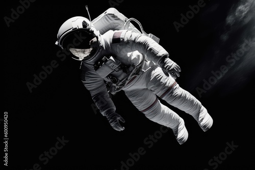 © hugo, Fototapeta premium Lonely astronaut flying at the black. Generative AI.