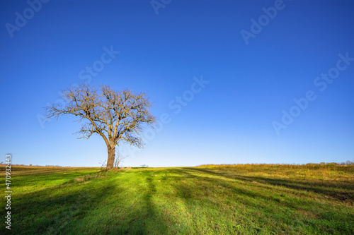 © Takacs Szabolcs, Fototapeta premium Lonely bare tree standing in the meadow
