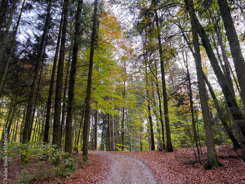 © Wolfgang Hauke, Obraz premium Lonely Bavarian Autumn forest path to reload batteries and reduce stress