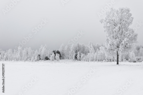 © Aliaksandr Dobysh, Fototapeta premium Lonely birch in hoarfrost