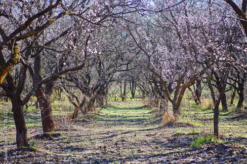 © Ryzhkov Oleksandr, Obraz premium Lonely blossoming tree in field on background