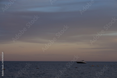 © Kateryna, Naklejka premium Lonely boat at the sea during the sunset.