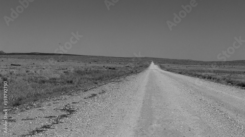 Fototapeta premium Lonely dirt road on a harsh flat prairie landscape
