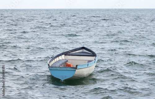 Naklejka premium Lonely empty boat on rough water